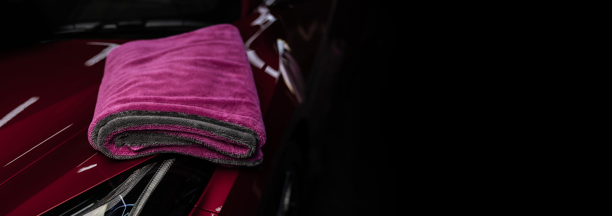 Drying used to be a mundane task because it took forever and risked scratching from so much abrasion. So we made a massive 35" drying towel with deep 1400 GSM microfiber plush recesses that capture moisture and contaminants to make drying your car easy, safe, and honestly fun. The dual layer microfiber safely absorbs an entire car worth of moisture while reducing the chance of scratches. No more ringing out tired old towels or sloshing around water from panel-to-panel. Double sided with one side pink and one side grey so you can keep your car dry in style.